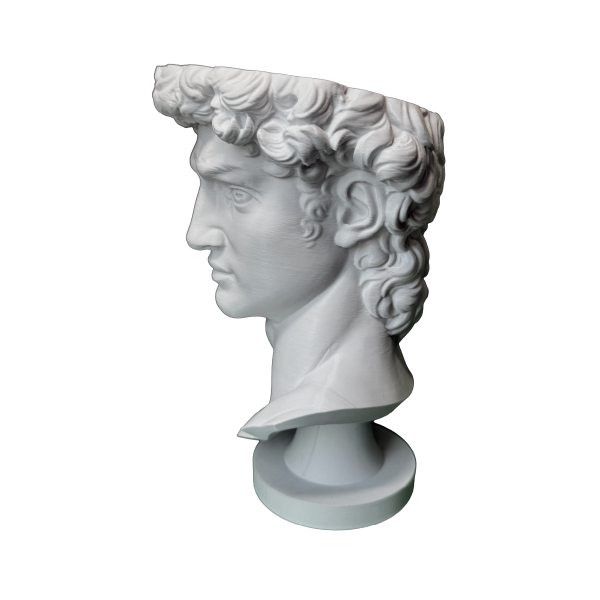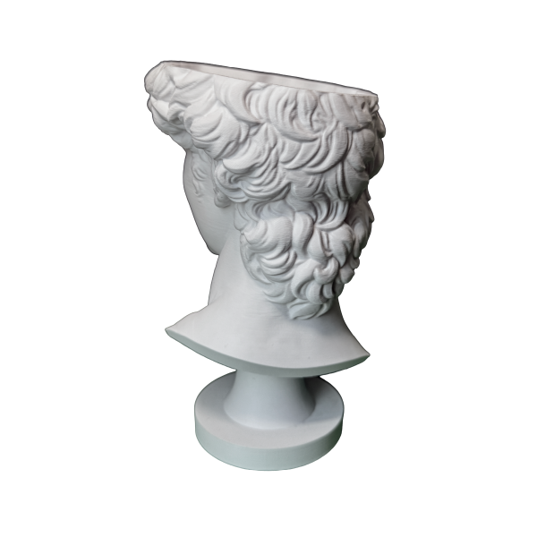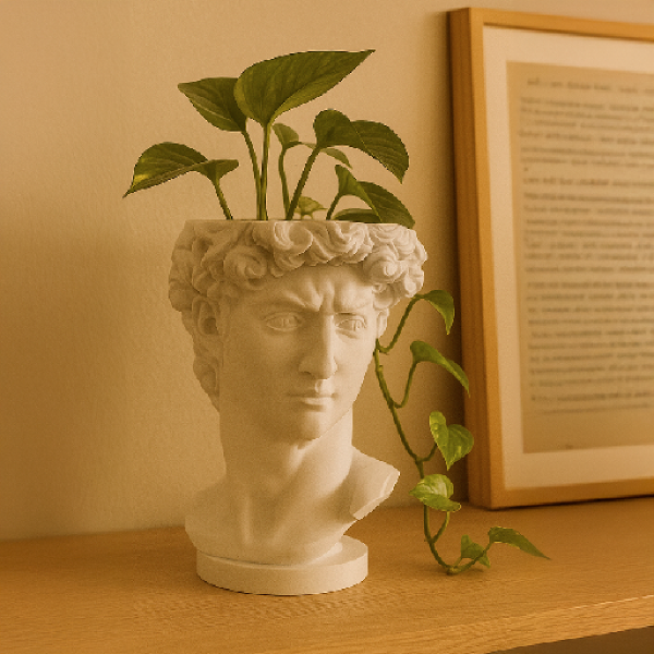 Basada en la icónica escultura del David, esta maceta transforma un objeto cotidiano en un elemento con presencia y carácter.