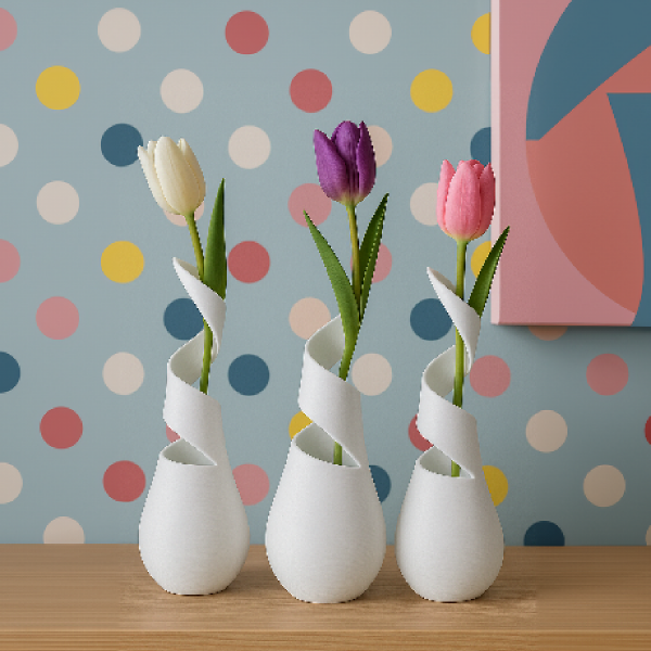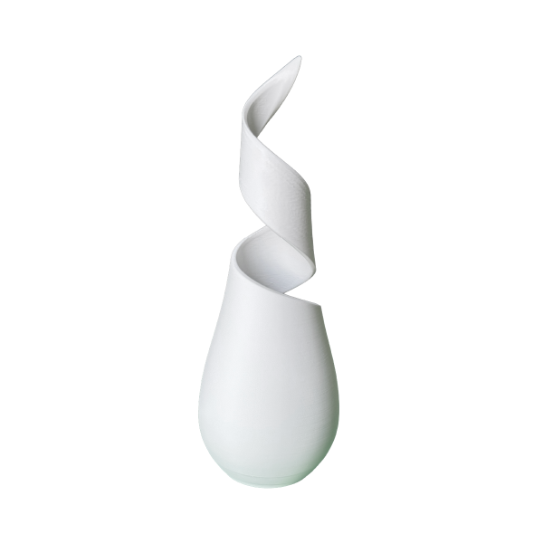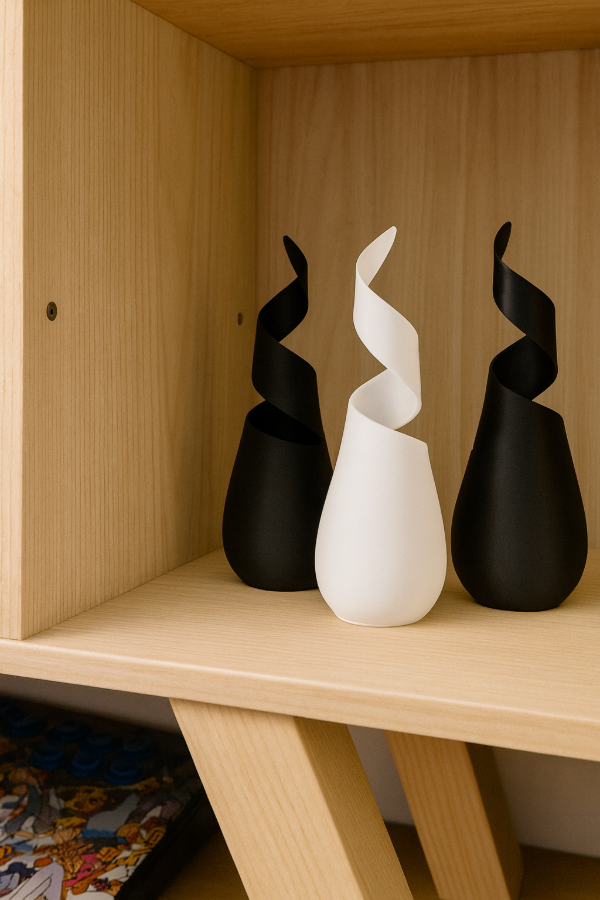 Su estructura en espiral abierta genera un recorrido visual continuo, aportando movimiento y ligereza sin recargar el espacio.