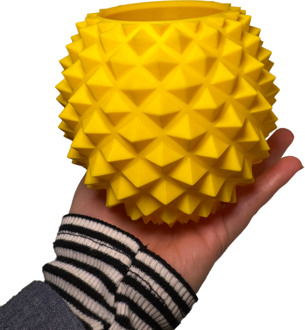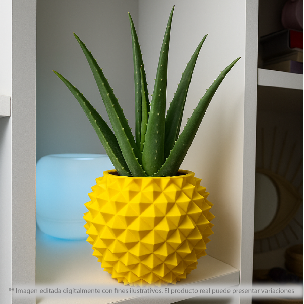 Maceta decorativa con textura geométrica, pensada para aportar volumen, textura y un punto focal llamativo en cualquier espacio.