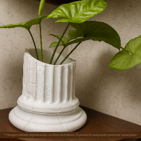 Maceta decorativa inspirada en columnas clásicas, con detalles que evocan el paso del tiempo y aportan una estética escultórica ideal para realzar cualquier espacio.