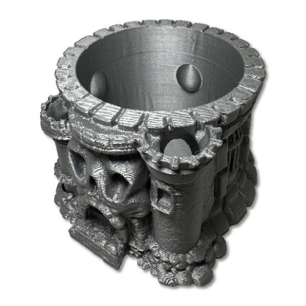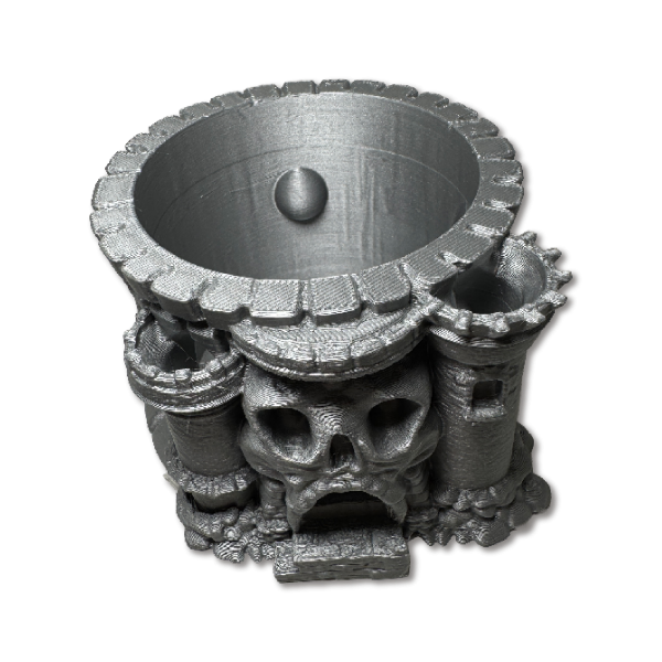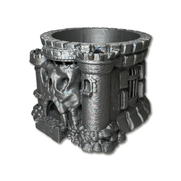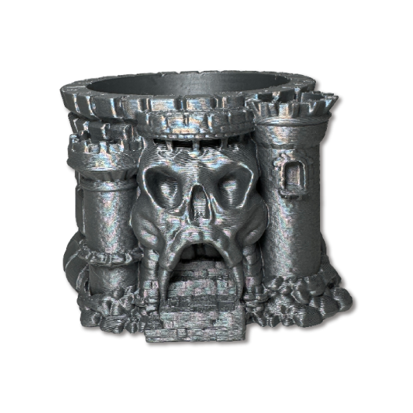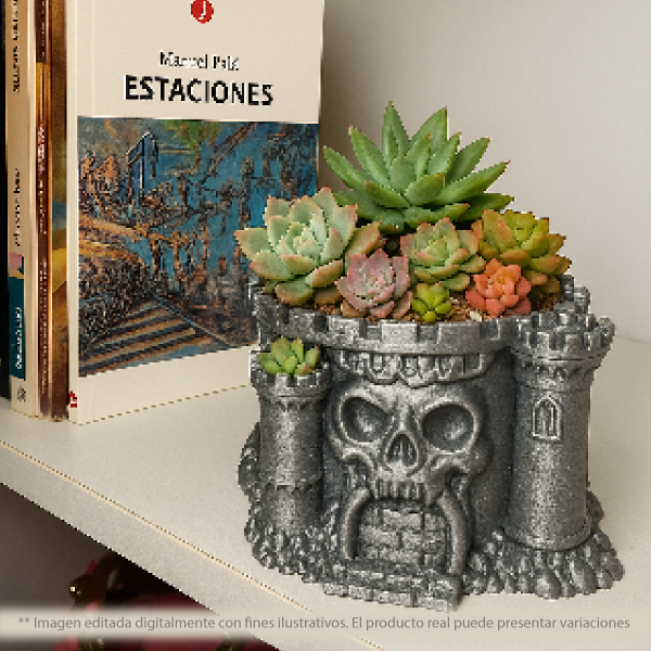 Maceta decorativa inspirada en una estructura de castillo con detalles escultóricos, ideal para plantas pequeñas o como objeto decorativo protagonista.