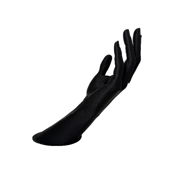 Inspirado en la forma humana, este soporte sostiene la botella generando una escena visual de equilibrio y suspensión.